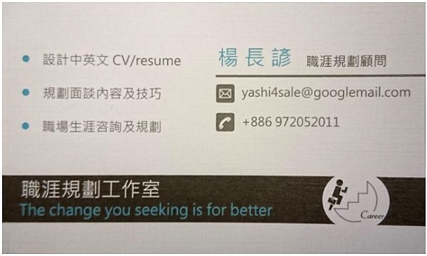 這裡順便幫自己打個廣告,對於職場規劃、談資薪等都歡迎私下來諮詢討論。